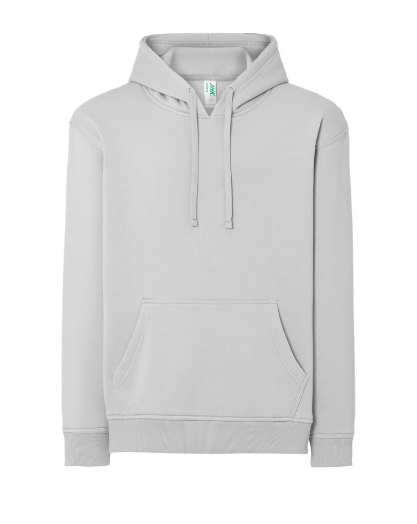 Model posiada kaptur ze sznurkami w kolorze bluzy, który chroni przed wiatrem i chłodem, oraz naszytą kieszeń typu kangur, idealną do ogrzania rąk lub przechowywania drobiazgów. Elastyczne ściągacze 2×1 przy rękawach i u dołu bluzy zapewniają idealne dopasowanie, a łatwo usuwalna metka ułatwia personalizację — bluza świetnie sprawdzi się jako element odzieży firmowej lub reklamowej.