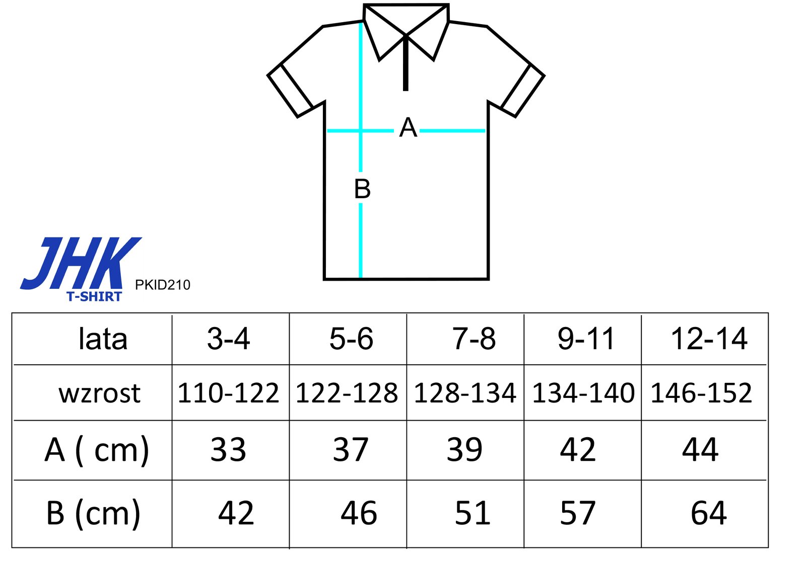 PKID210 Polo młodzieżowe z krótkim rękawem. Miękki chwyt bawełny. Zapinane na dwa guziki. Ściągacze na rękawach. Boczne rozcięcia. 100% stabilizowana bawełna czesankowa pique. Gramatura: 200 - 210g Rozmiary: 3-4 / 5-6 / 7-8 / 9-11 / 12-14